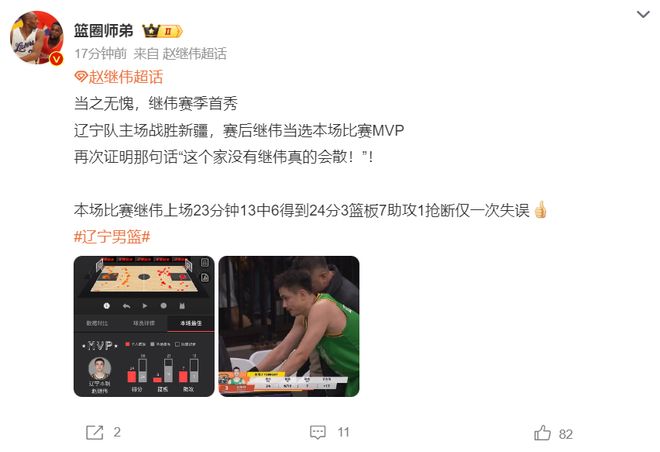 遼籃資訊:趙繼偉全場(chǎng)最高24分幫助遼寧拿下勝利,這種感覺(jué)久違了。