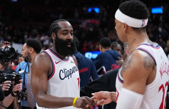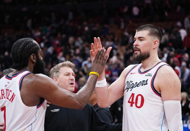 好在快船還算爭氣,盡管在對陣猛龍的比賽中,他們幾乎全程落后,但最終還是咬牙把比賽拖入加時,并且逆轉(zhuǎn)取勝。卡子哥不在,自然是登哥挺身而出,后者這場比賽也真是豁出去了,發(fā)揮無可挑剔。全場出戰(zhàn)42分鐘的登哥,先抑后揚(yáng),上半場運(yùn)動戰(zhàn)13中3,最終卻以27投10中的效率,交出了31分2籃板10助攻的成績單,特別是在從進(jìn)入末節(jié)決戰(zhàn)后開始,登哥接管了比賽。在第四節(jié)和加時賽,哈登貢獻(xiàn)16分3助攻,他一次又一次地沖擊籃筐,為快船啃下了猛龍這塊硬骨頭。