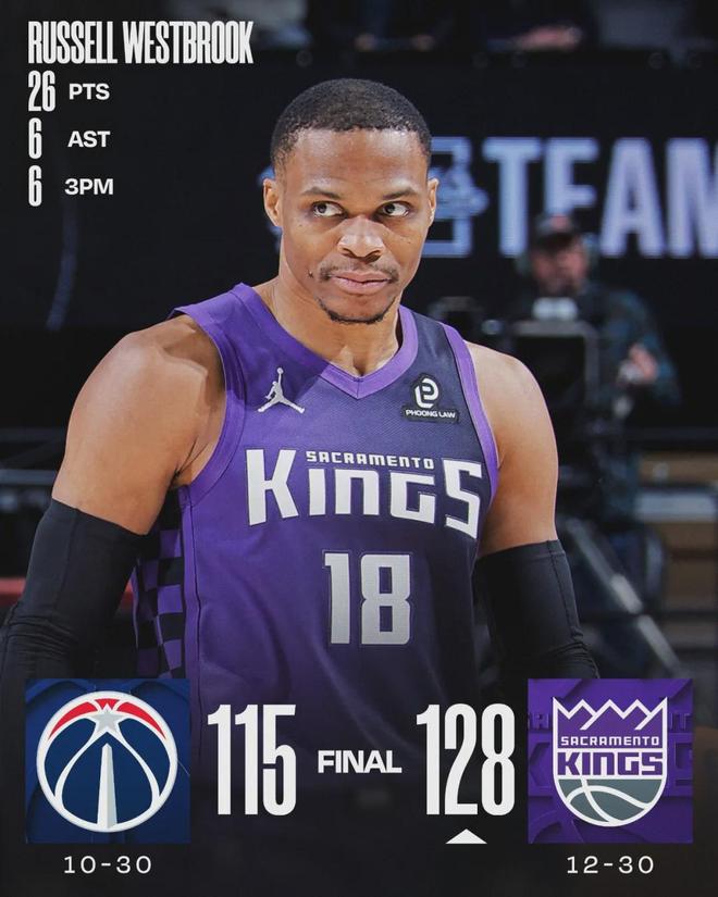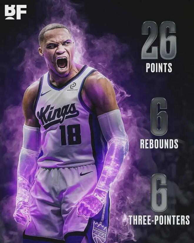 跟杜蘭特和哈登不同,威少本賽季只是底薪合同。威少保持全勤,賽季至今為國王隊打了42場比賽,其中36場首發(fā)。他場均出戰(zhàn)29.5分鐘,得到15.1分6.4籃板7助攻1.3搶斷,三項命中率:43%,35.7%,68.3%。
