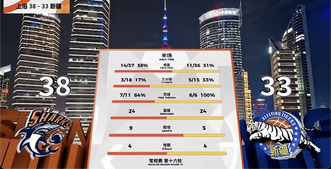 隨后大鯊魚外援古德溫開始發(fā)力,大號三分命中吹響球隊反攻的號角,古德溫這一節(jié)4投全中,獨(dú)砍11分。在他的帶領(lǐng)下,上海男籃打出一個11比0,反超比分。而新疆男籃第二節(jié)19次出手僅僅投進(jìn)5球。大鯊魚單節(jié)打出25比16,在半場結(jié)束時以38比33領(lǐng)先5分。