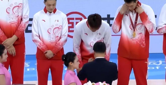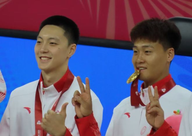 拿到金牌后趙睿還咬了一下這塊金牌,趙睿在四年前曾咬過周琦的金牌。