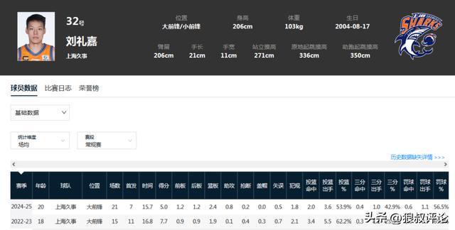 其中,上海男籃小將劉禮嘉又一次入選男籃集訓(xùn)隊(duì)引發(fā)外界的熱議。這名04年小將,上個(gè)賽季代表上海男籃出戰(zhàn)21場(chǎng)比賽,場(chǎng)均15.7分鐘得到5分2.4籃板0.8助攻的數(shù)據(jù)。