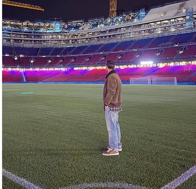 這一次,他獨自站在空蕩的草皮上,默默凝視看臺。次日清晨,他在Instagram曬出照片,并配文:
