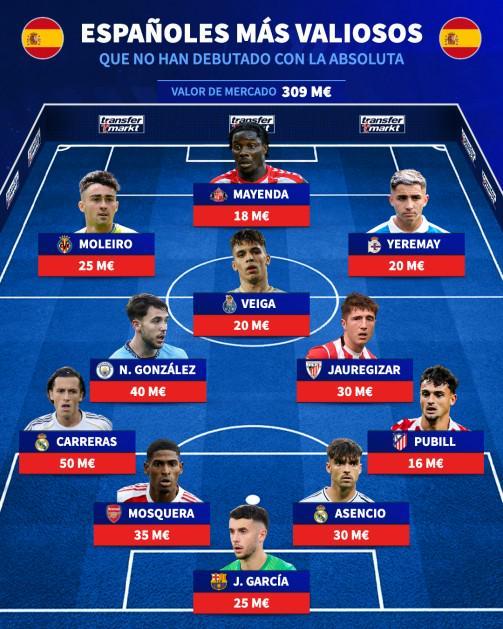 北京時間11月12日,德國轉(zhuǎn)會市場列出了從未代表西班牙隊出場的身價最高的陣容,其中尼科-岡薩雷斯、卡雷拉斯、莫斯克拉、勞爾-阿森西奧、霍安-加西亞等人在列。